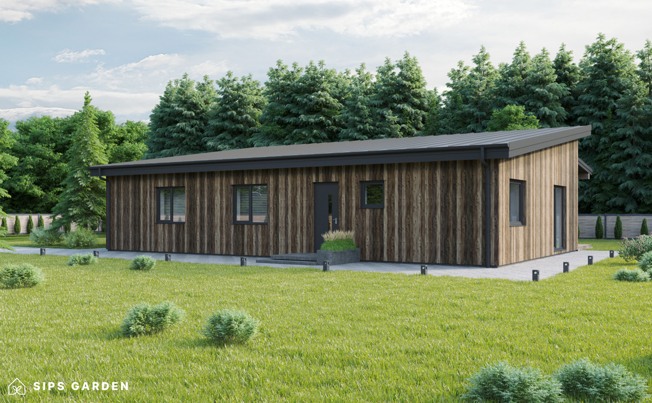 Dieses Produkt wird mit einem fortschrittlichen, hochwertigen und energieeffizienten SIPs-System (Structural Insulated Panels) hergestellt, das eine hervorragende Isolierung und eine lange Lebensdauer gewährleistet. Die Außenverkleidung besteht aus