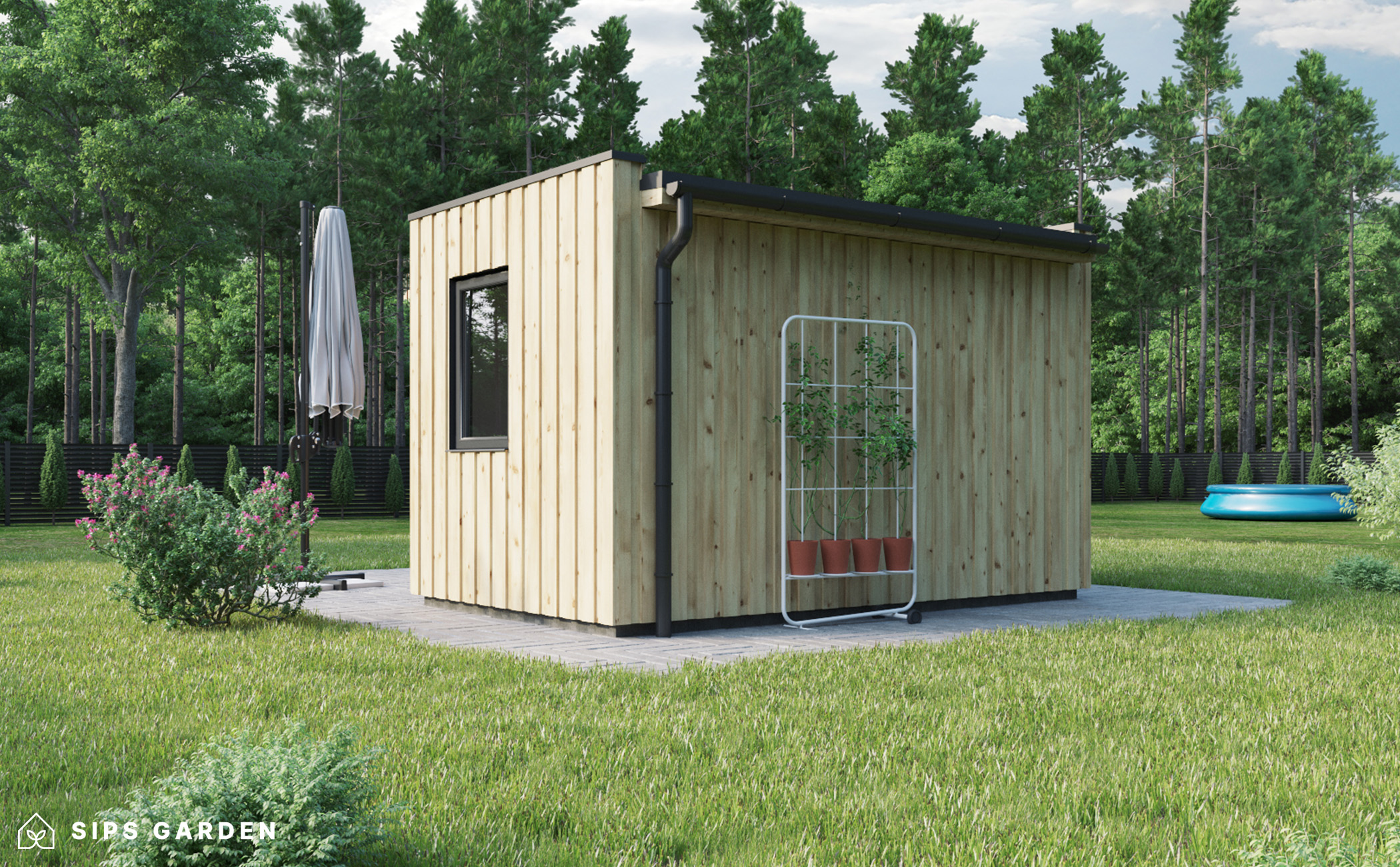 Unser Bausatz enthält alle wesentlichen Materialien und grundlegenden Werkzeuge, die Sie für den Bau Ihrer eigenen Gartenstruktur benötigen. Dazu gehören vorgeschnittene SIP-Platten, Bauholz, Schrauben, Nägel und eine umfassende Anleitung. Darüber hinaus enthält der Bausatz Fenster und Türen, eine Außenverkleidung nach Wahl und eine Dachabdeckung. Produkte der Kategorie Gartenhäuser werden außerdem mit einem Innenausstattungs-Bausatz geliefert, das Naturholzverkleidungen und Laminatfußböden enthält.