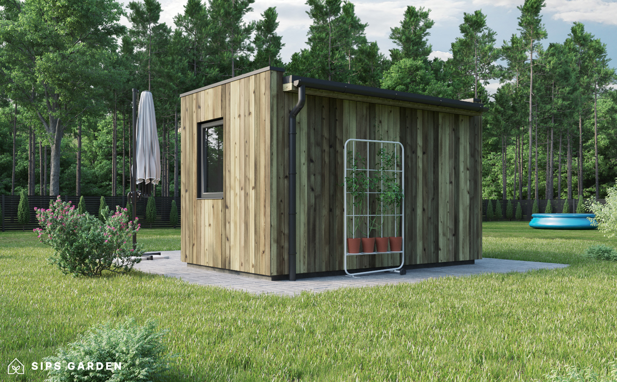 Dank seiner kompakten Größe lässt es sich leicht in jeden Außenbereich integrieren, ob eingebettet in die grüne Umgebung des Gartens oder als eigenständiges Element. Trotz seiner geringen Grundfläche sind die Möglichkeiten zur individuellen Gestaltung endlos, sodass Sie es genau an Ihre Bedürfnisse und Vorlieben anpassen können.